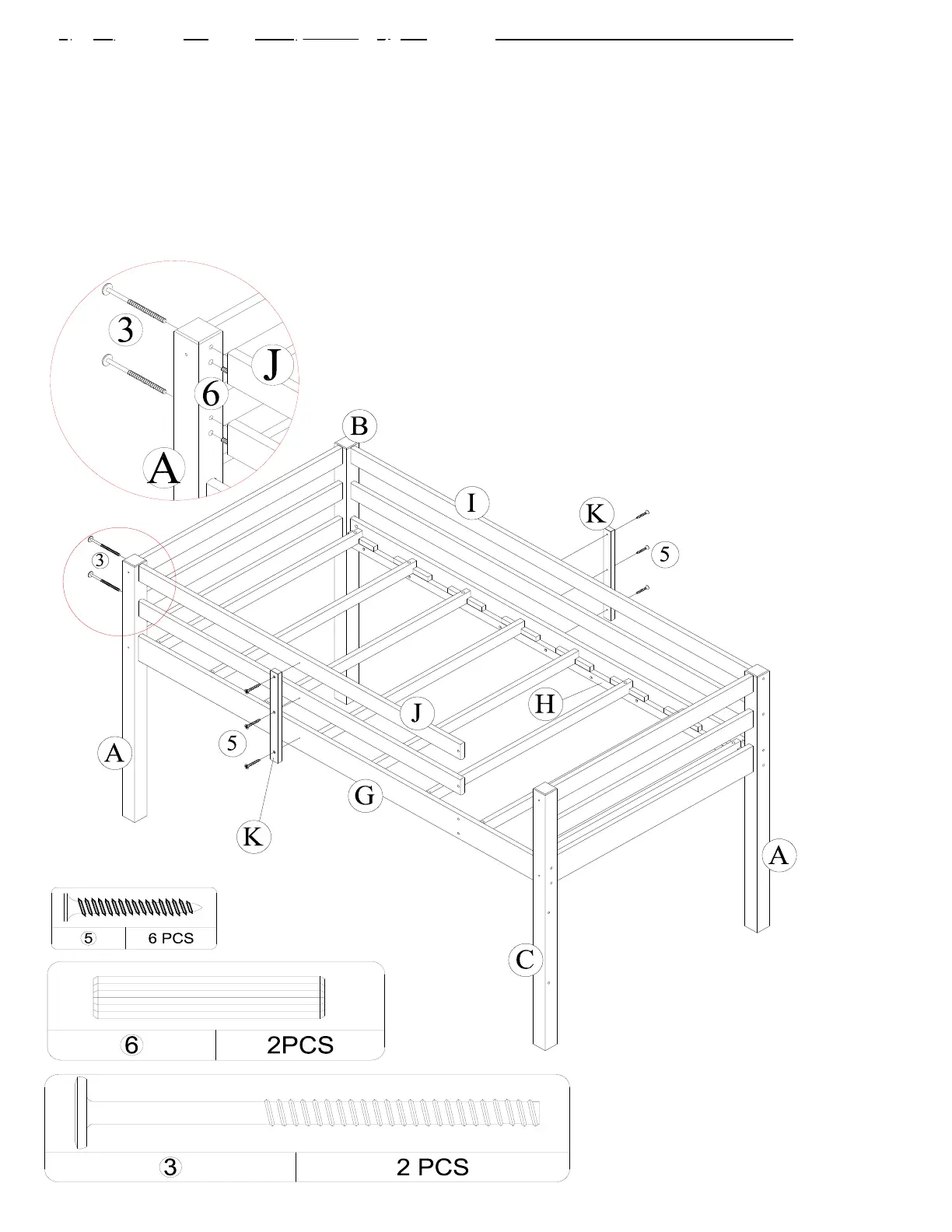 longs garde-corps (I) et les barres latérales (H) à l'aide des vis à bois (5).