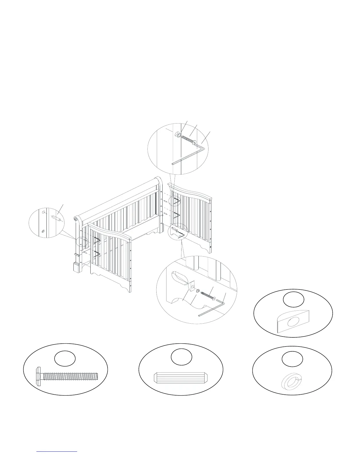 Attach the left side panel (D) to the left post (A) and front rail (G) with bolts (1), curved nuts