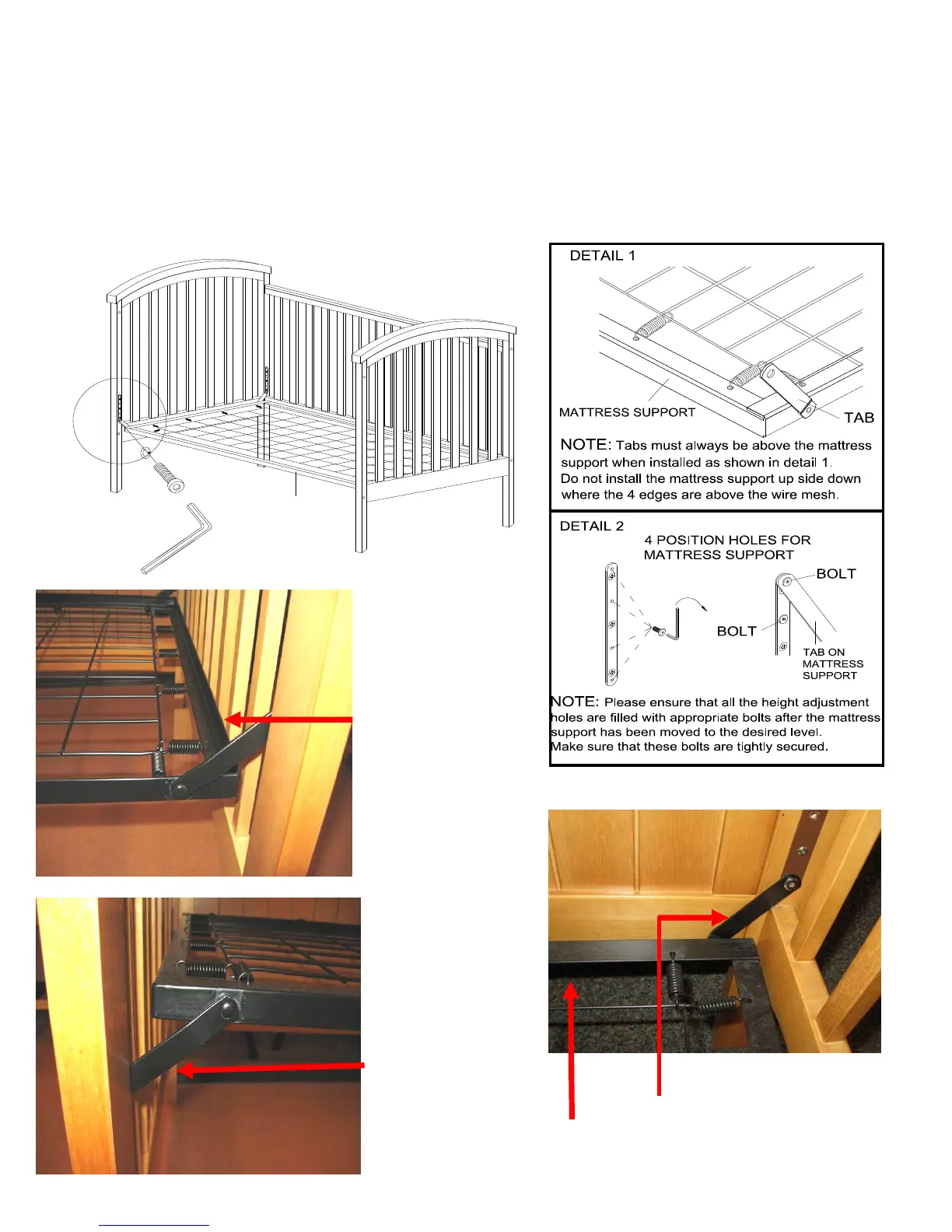 (3) to tighten bolts. Refer to details 1 and 2 for direction on how to properly attach the mattress