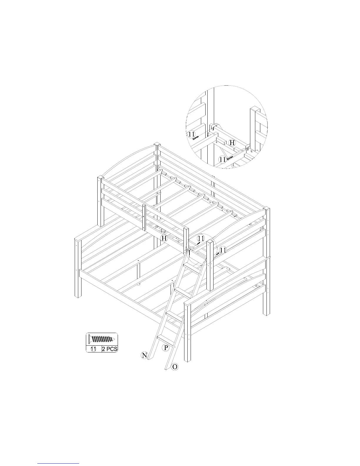 Attach the ladder to the top side rail (H) with flat head screw (11) as shown.