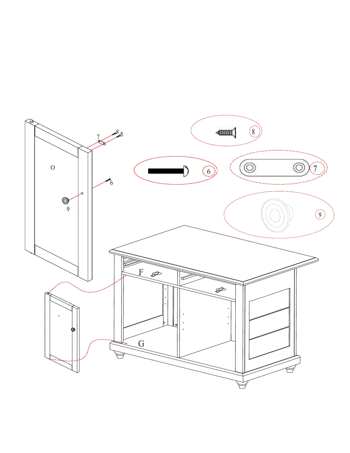 Coloque el pomo (9) en la puerta (O) con un perno (6).
