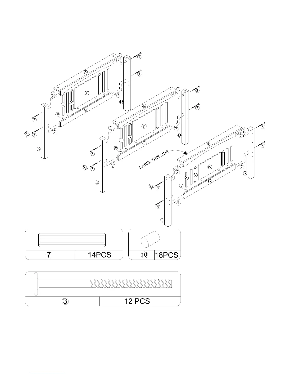 NOTE: Be sure to use headboard top cross (F) with label attached to it between top posts (A) and (C).