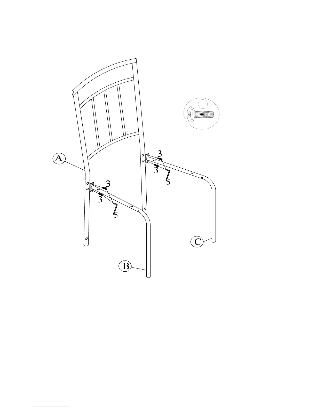 Attach left leg (B) and right leg (C) to the back frame (A) with hex socket head