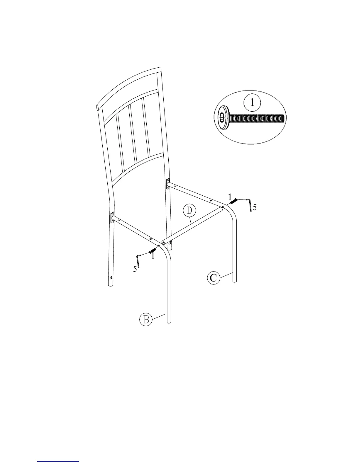Attach seat support (D) to legs (B) and (C) with hex socket head bolts (1).