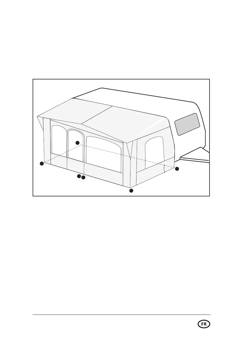 Commencez du côté de la caravane avec les points 1 et 2, puis les coins 3 et
