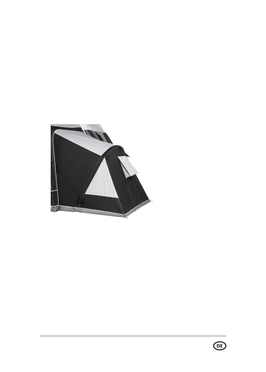mittels Reißverschluss an der Seite des Vorzeltes. Dazu die entsprechende