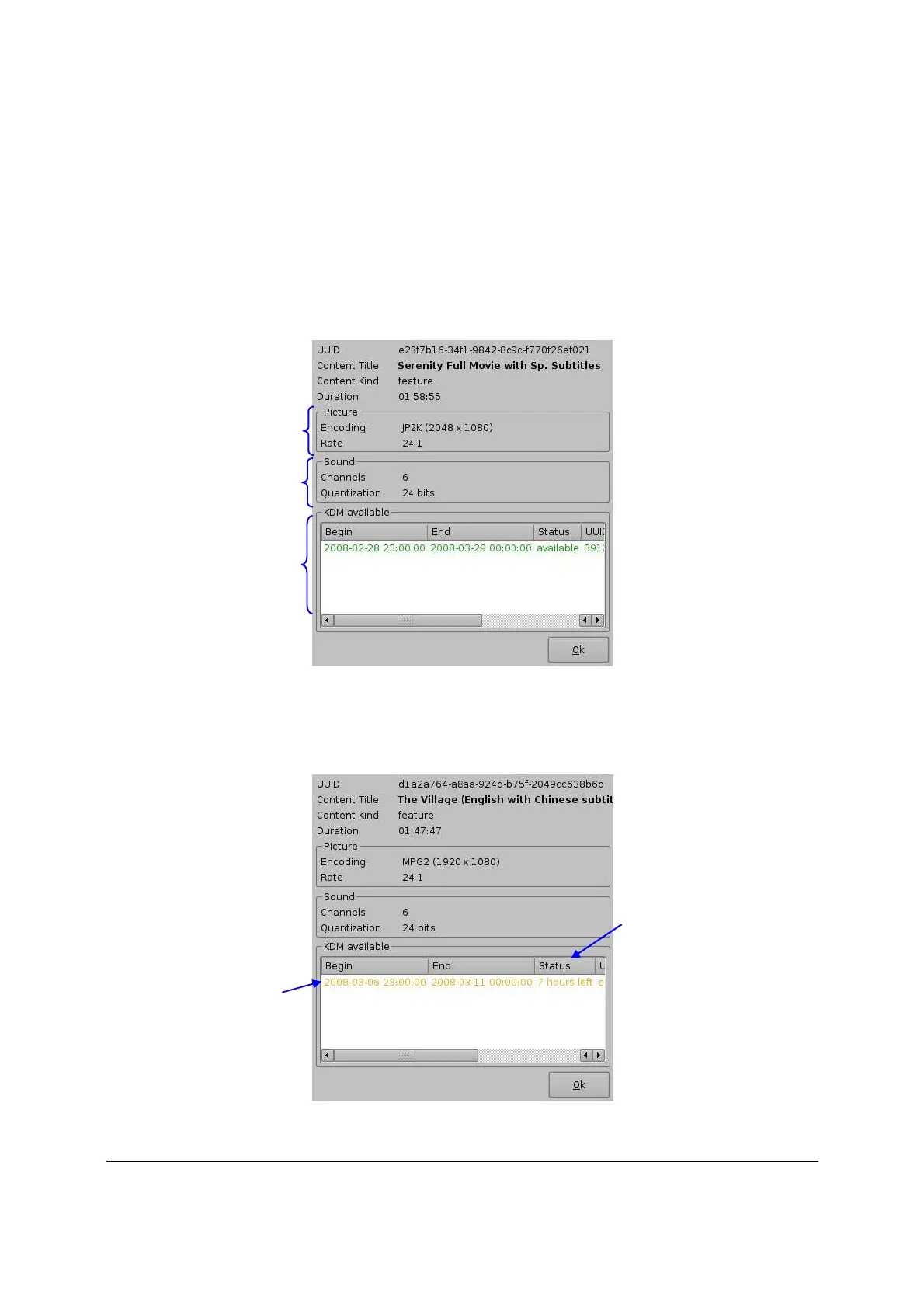 Illustration 15: Exemple de la fenêtre Edit avec un KDM valide pendant plus de 48 heures