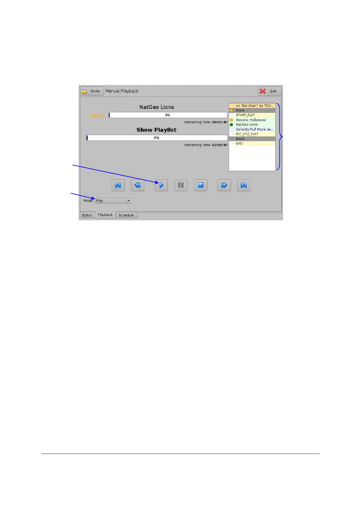 Illustration 23: L’onglet Playback après la saute à la composition suivante