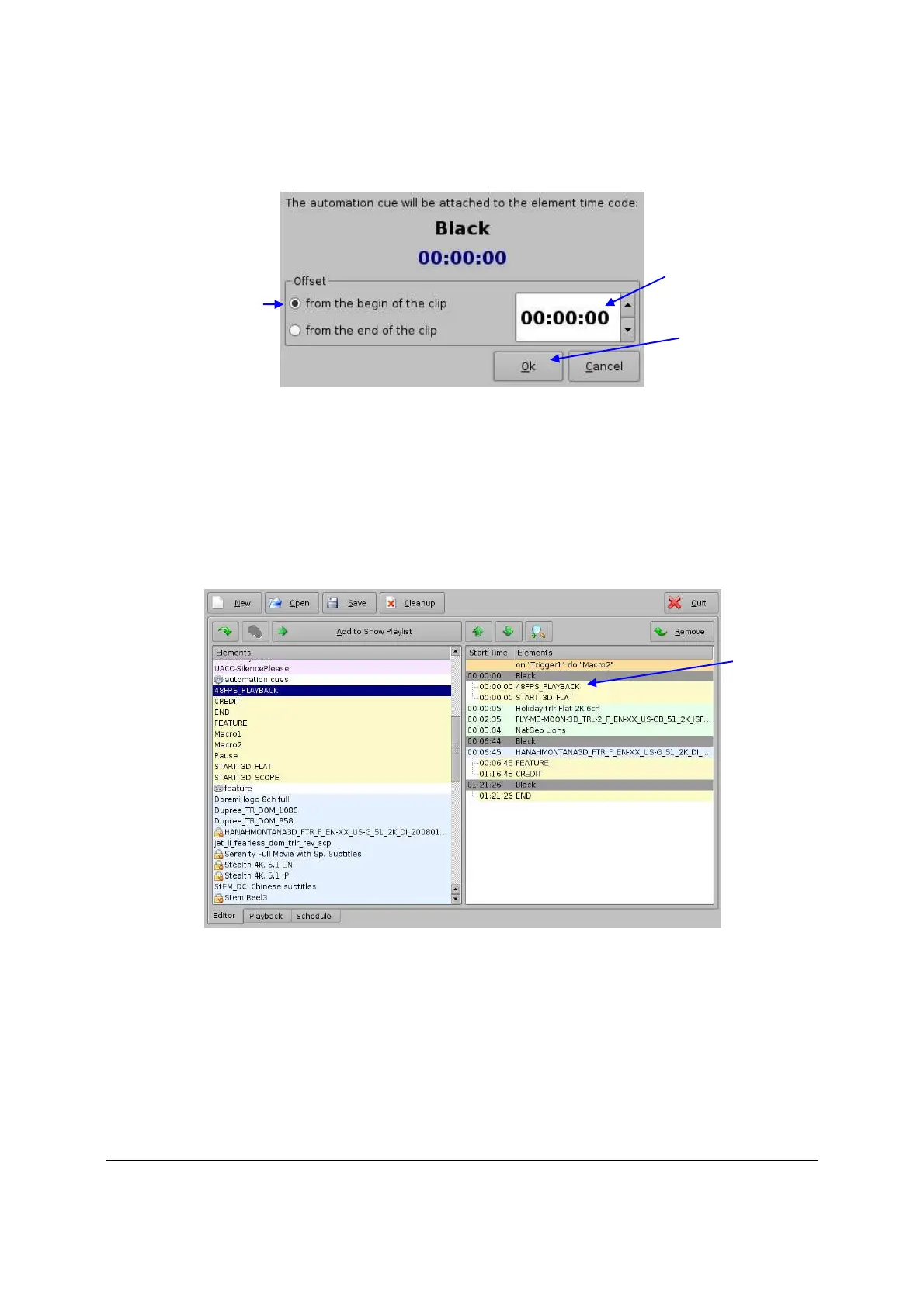Illustration 30: Configuration de l’Offset de l’Automation Cue*