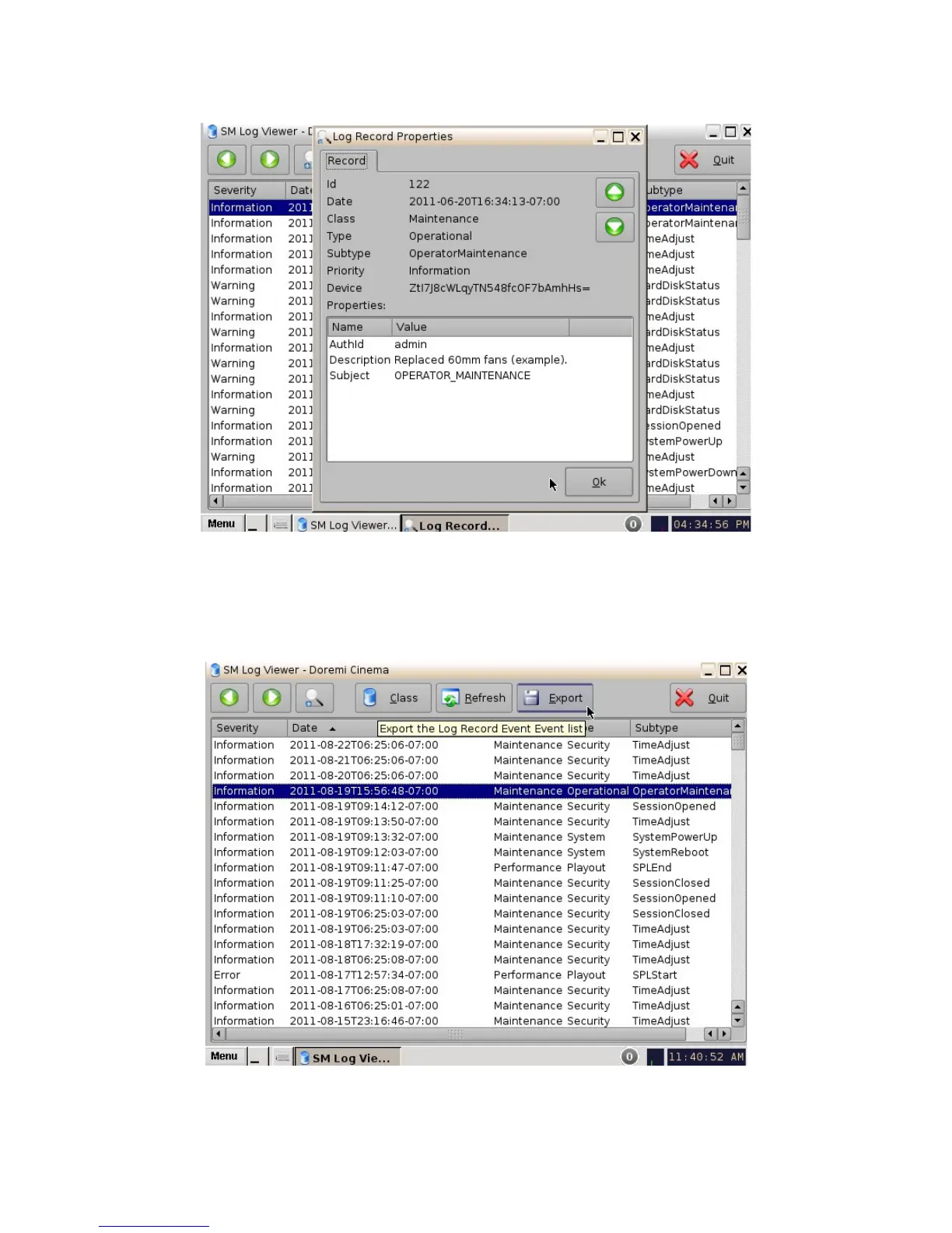 • To export the log, select the concerned log and click on the Export button (Figure 122).