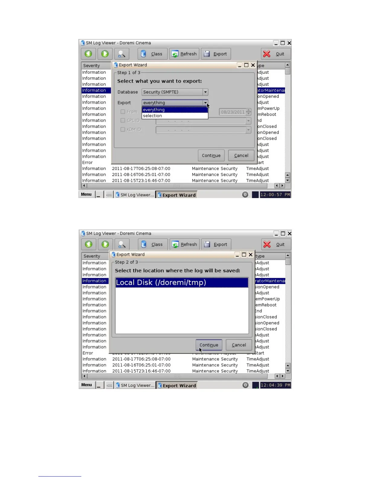 • Select the location for where the log will be saved. Then click Continue to proceed (Figure