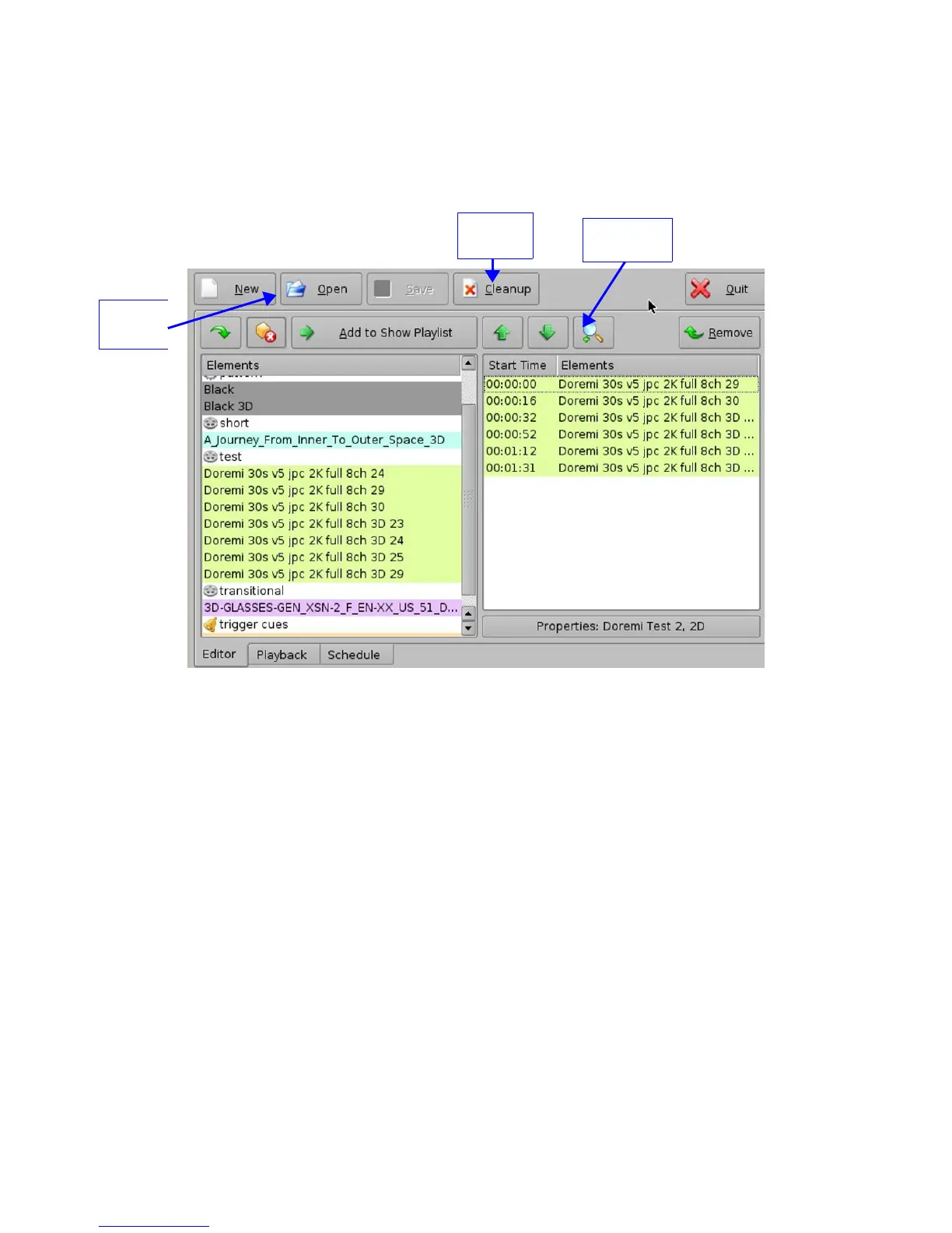 • To open an existing Show Playlist, click on the Open button from the CineLister Editor tab