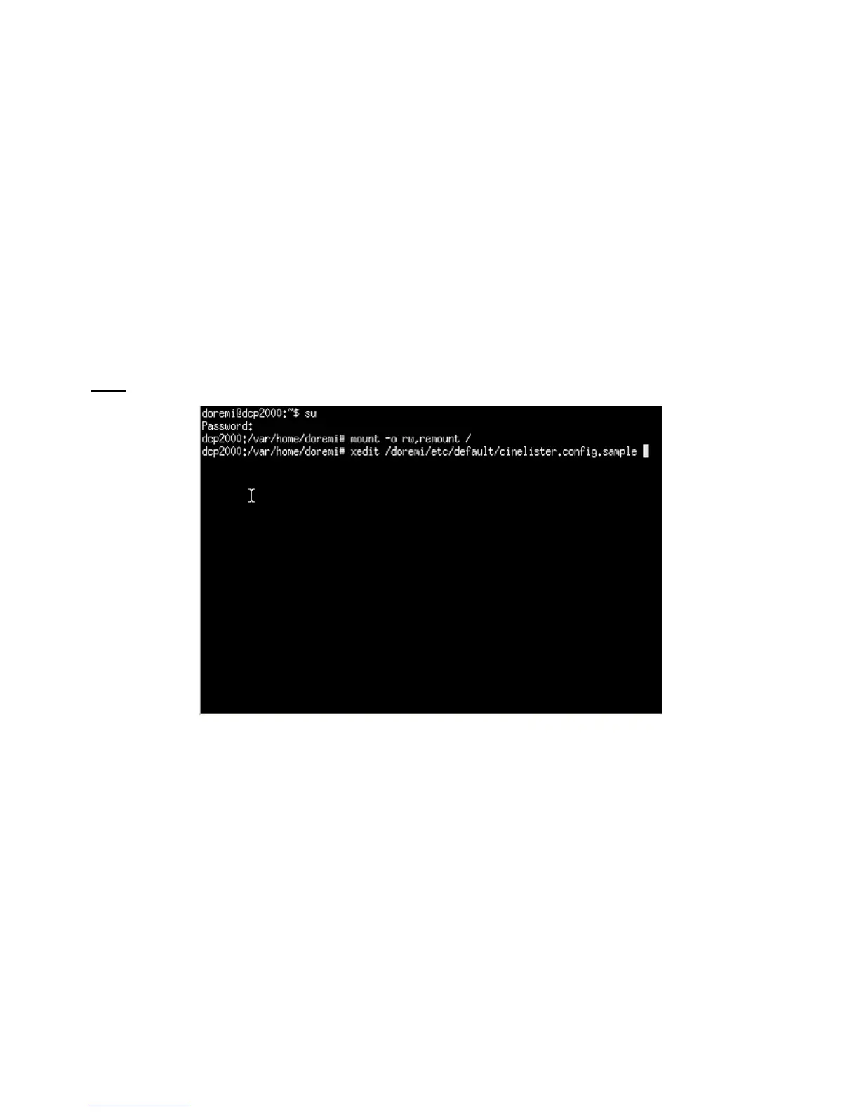 • Type: xedit /doremi/etc/default/cinelister.config.sample and press Enter.