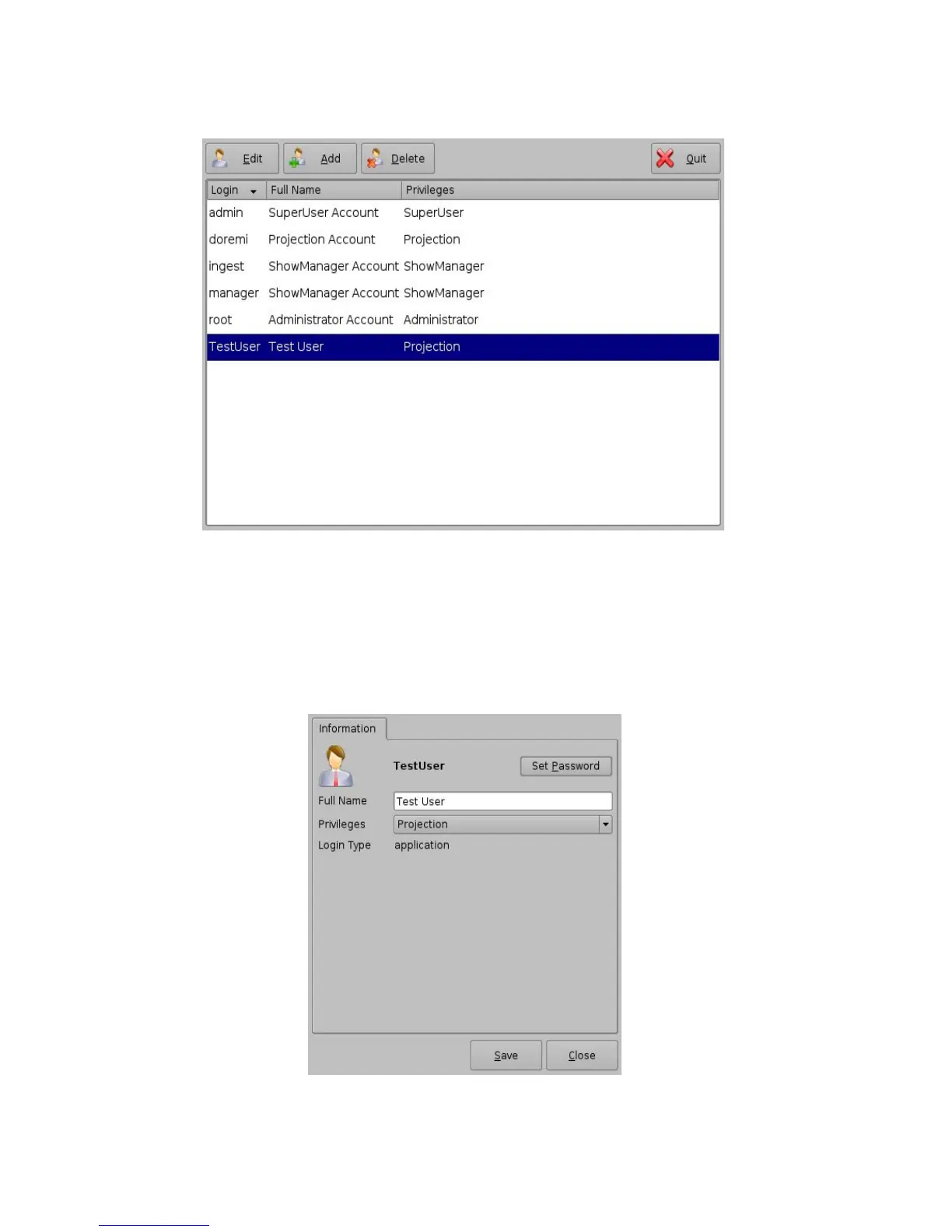 • To edit an existing user account, select it within the Account Manager GUI and click the Edit