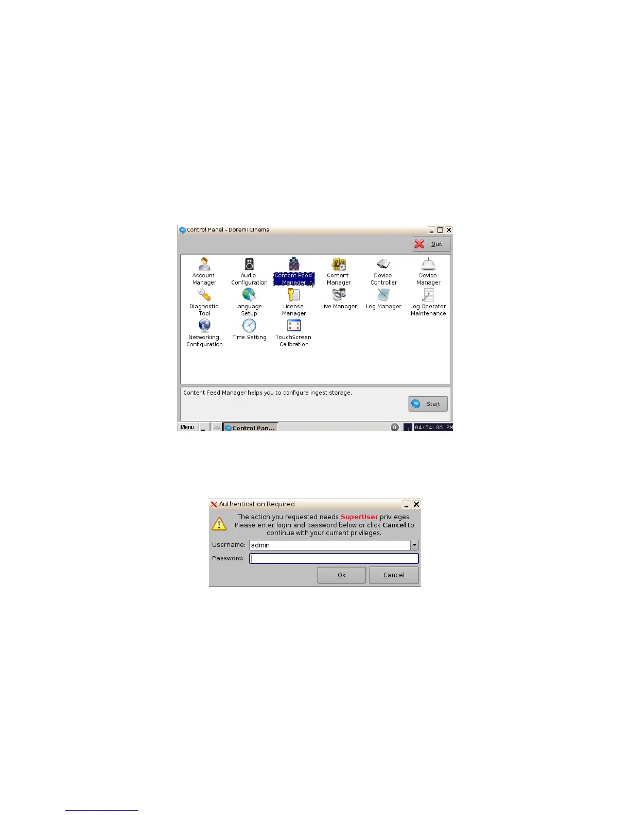 • To open the Content Feed Manager application, go to Menu -> Control Panel and double-