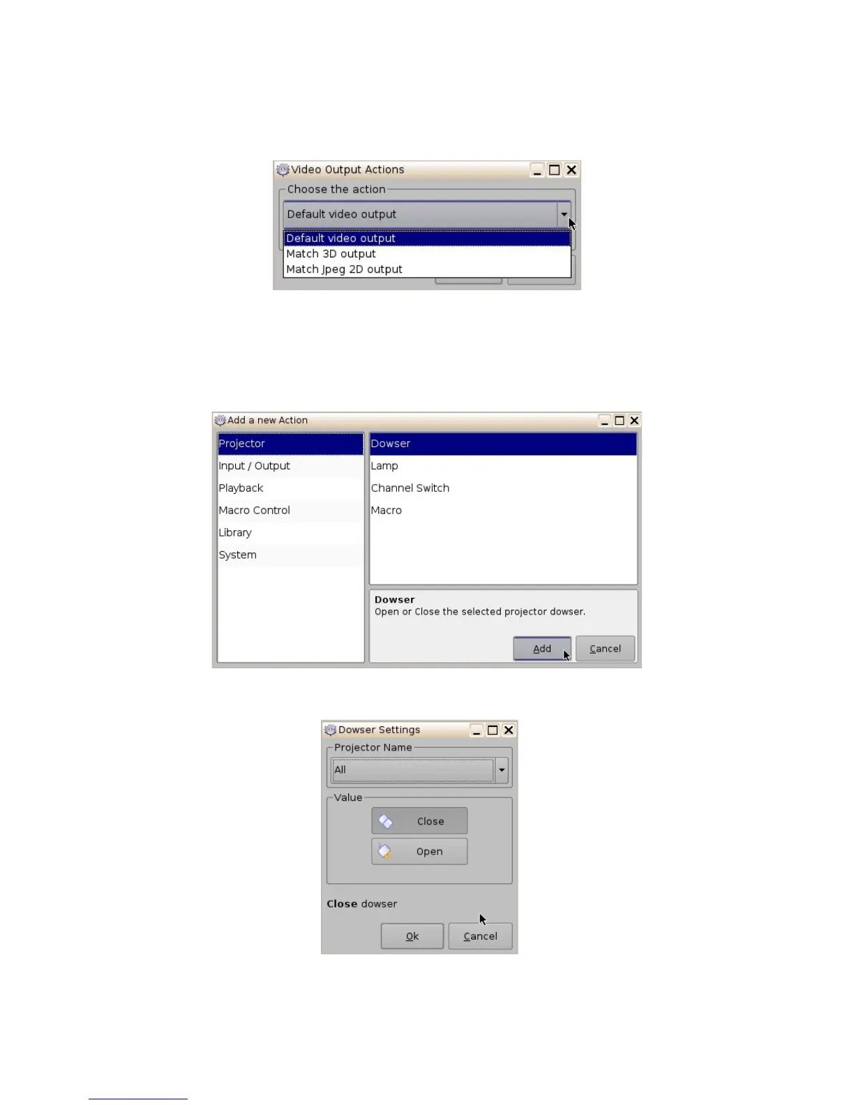 From the “Add a new Action” window choose the Projector setting ( Figure 173). Next, scroll to and