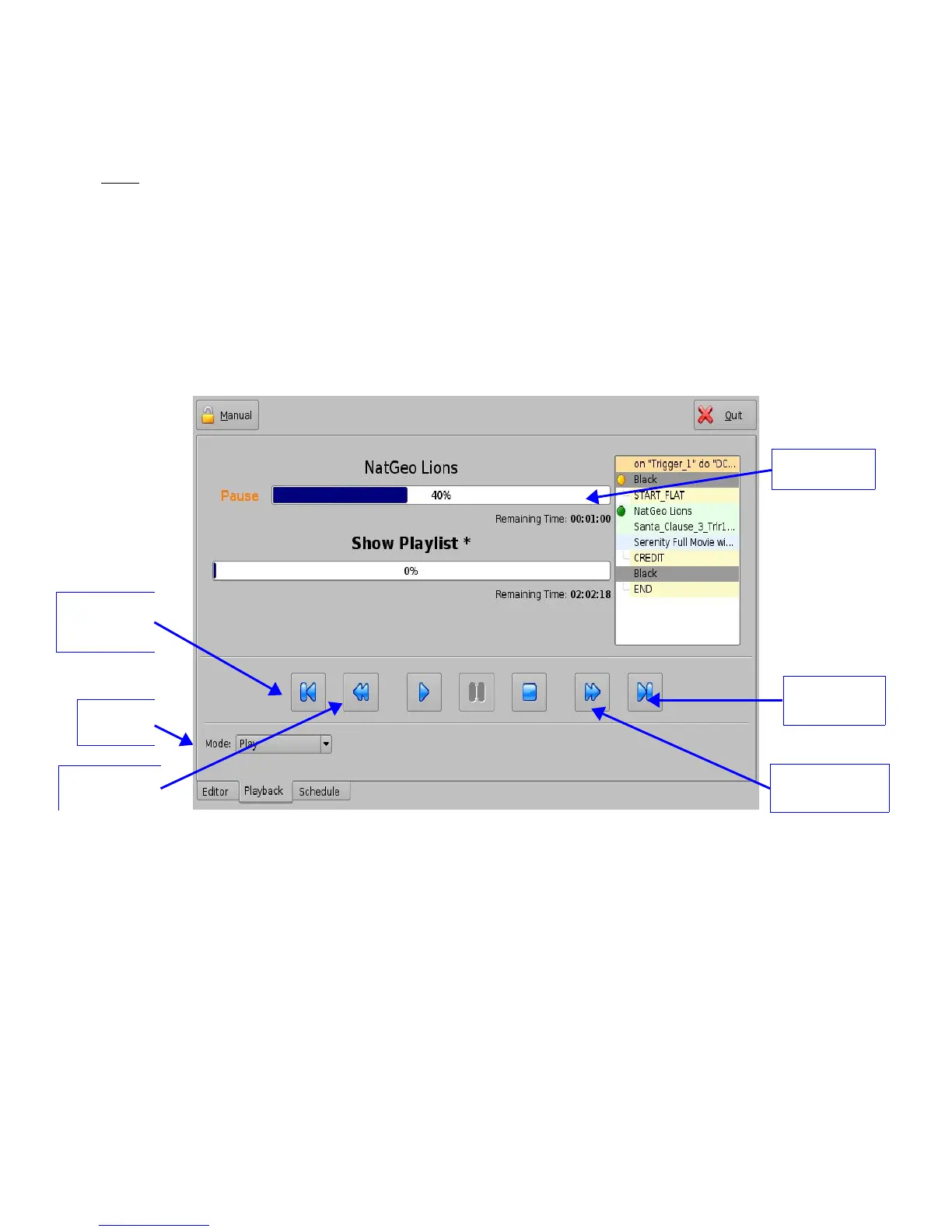 • Select the playback mode from the “Mode” drop-down list: Play; Loop; Play then rewind; or