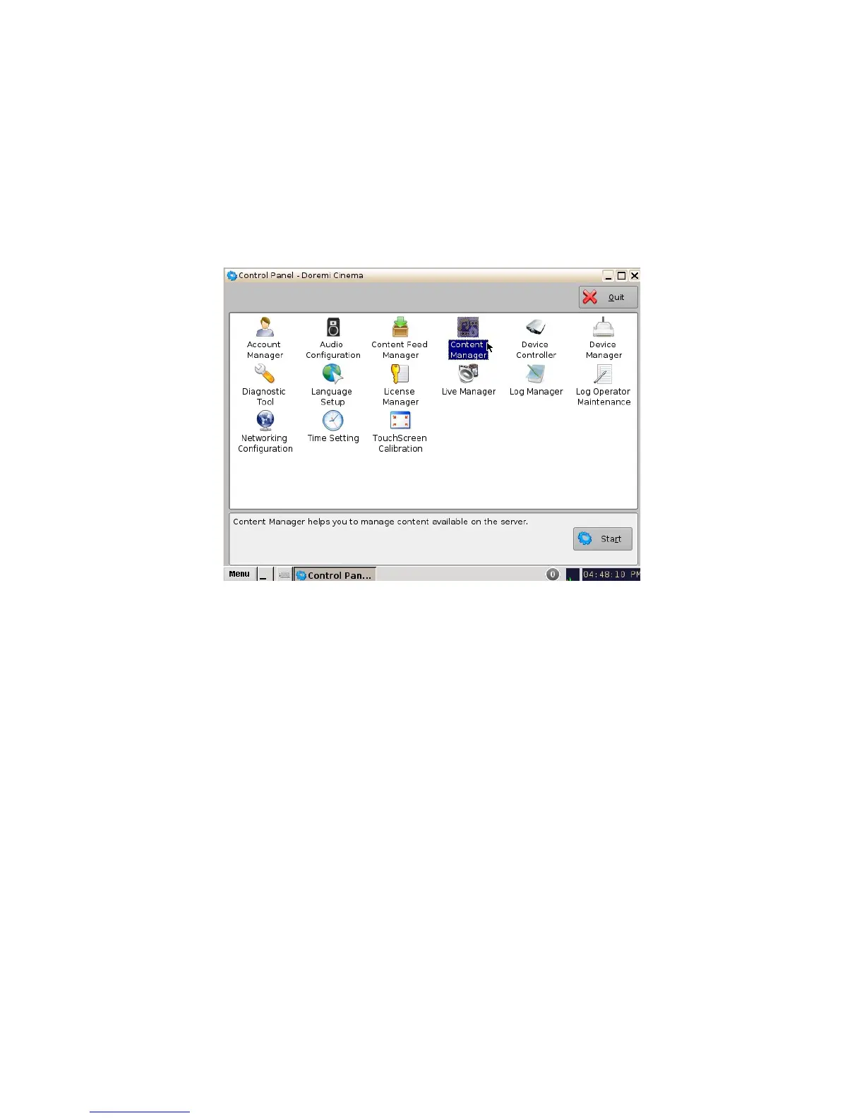 Figure 48: Control Panel with Content Manager Icon Selected