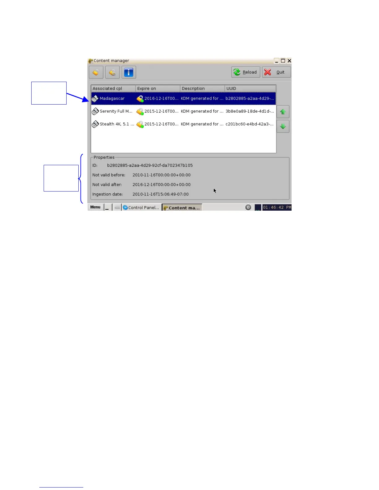 Figure 75: Decryption Keys Page: KDM Selected - Properties Shown