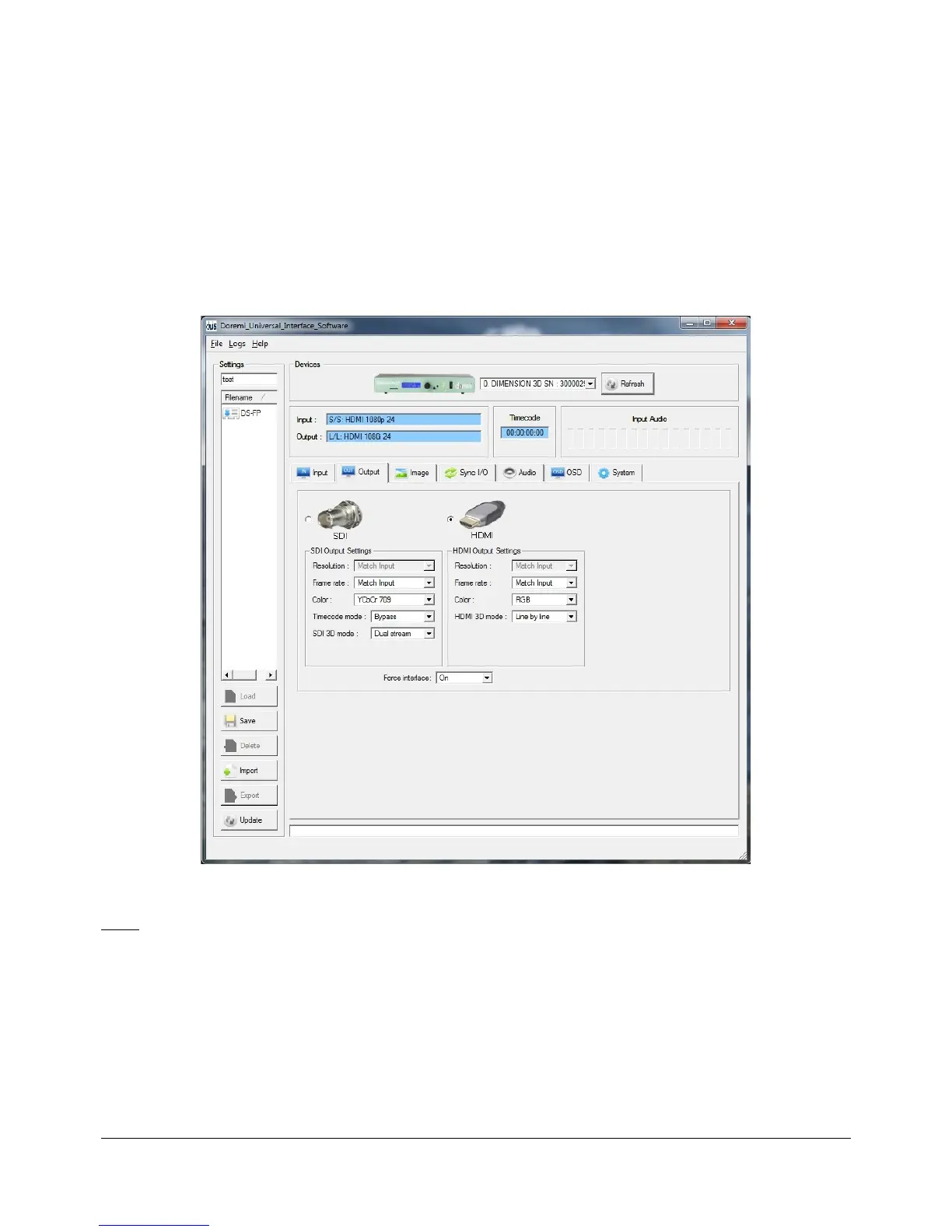 Figure 12: Doremi Universal Interface GUI – Output Tab