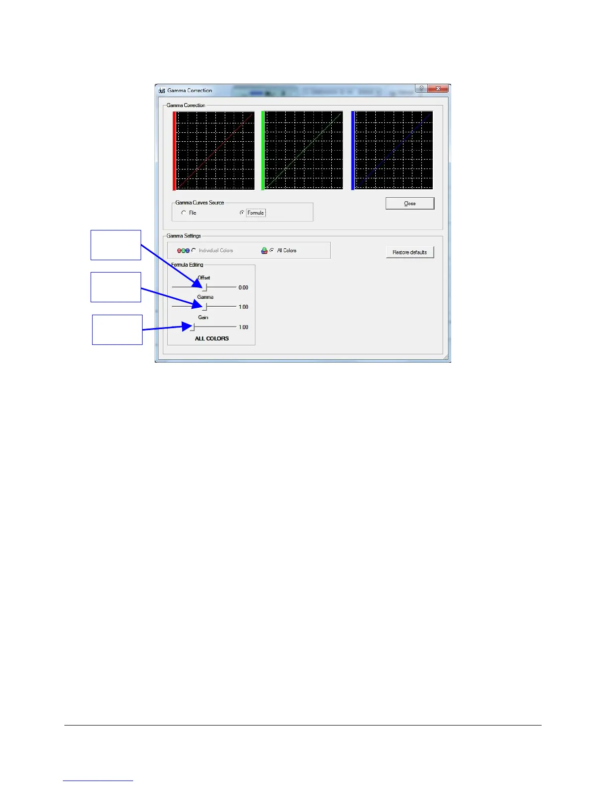 • Edit the formula by using the “Offset,” “Gamma” and “Gain” cursors available in the