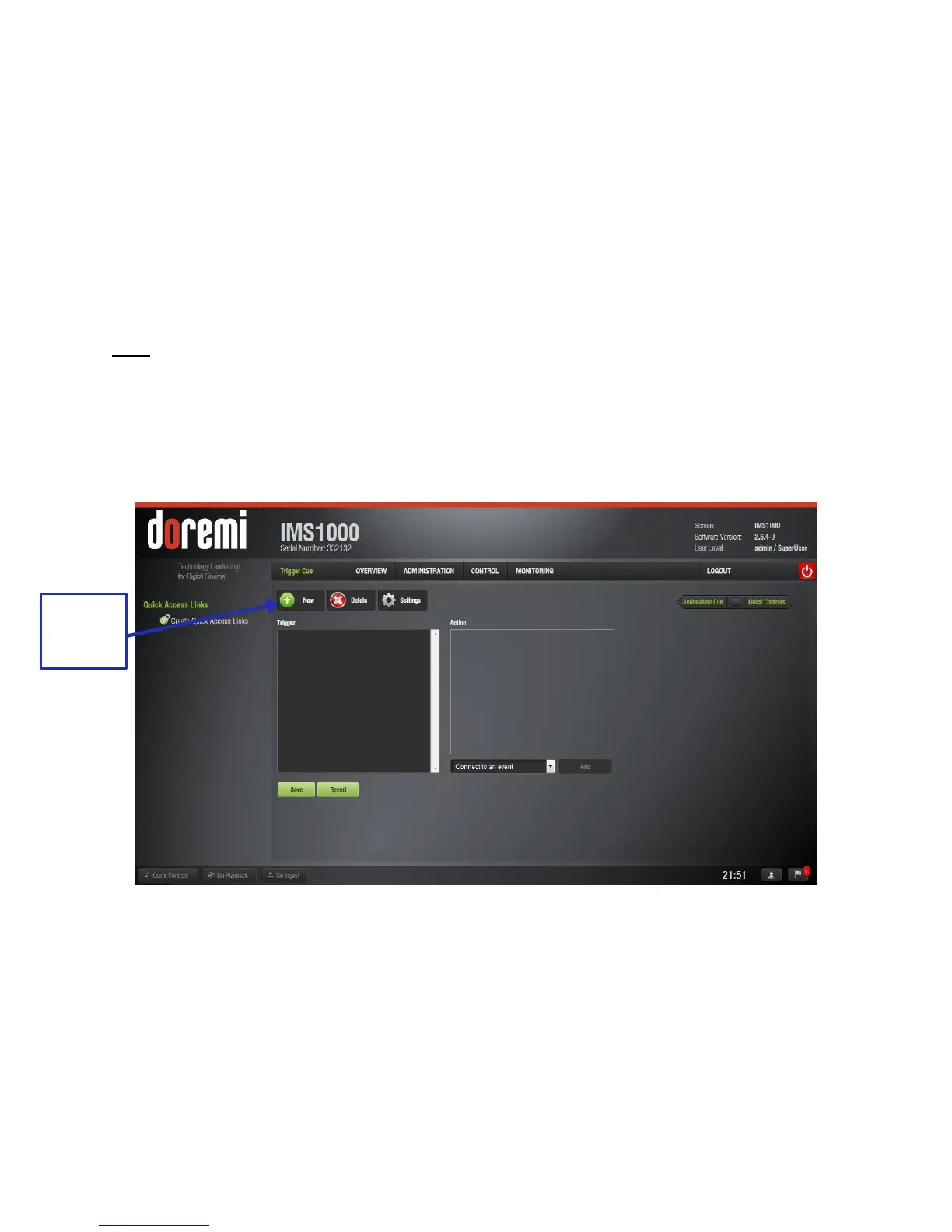 the Macro Editor tab (Administration → Macro Editor) or by clicking on the Trigger Cue arrow in