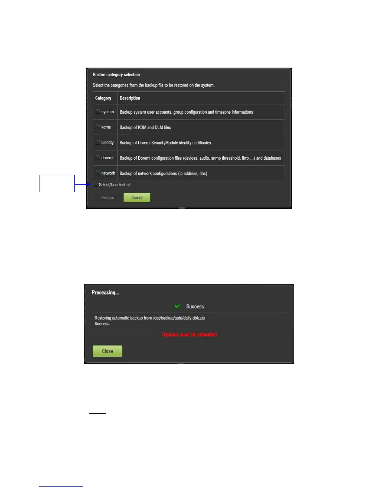 Figure 202: Restore Category Selection Window