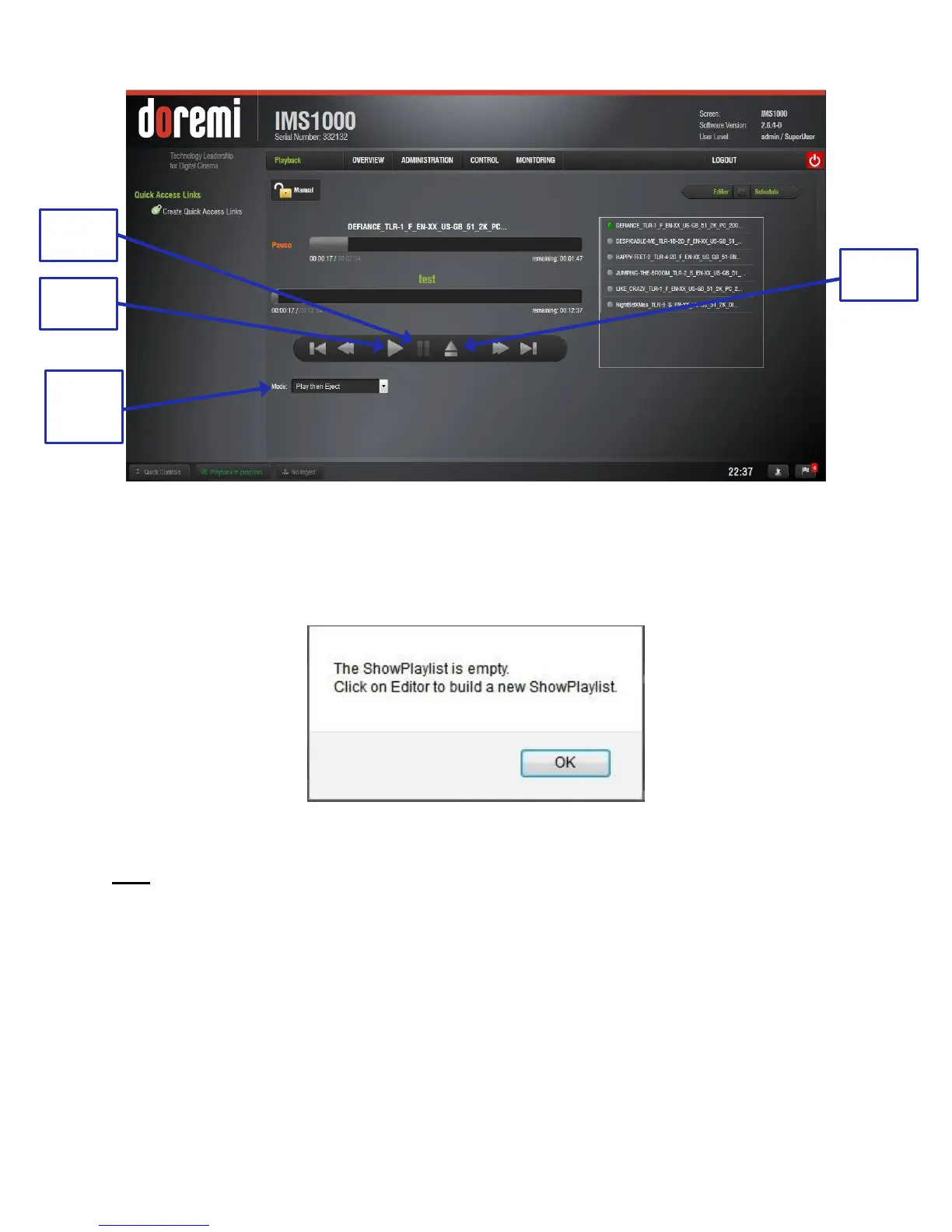 ● If no Playlist is selected, a message will appear stating, “The show playlist is empty”
