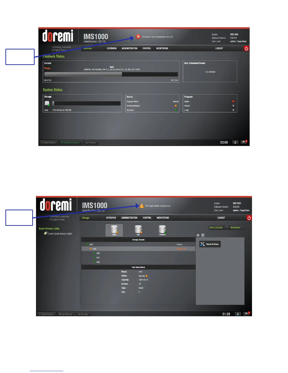 Figure 269: Projector Communication Failure