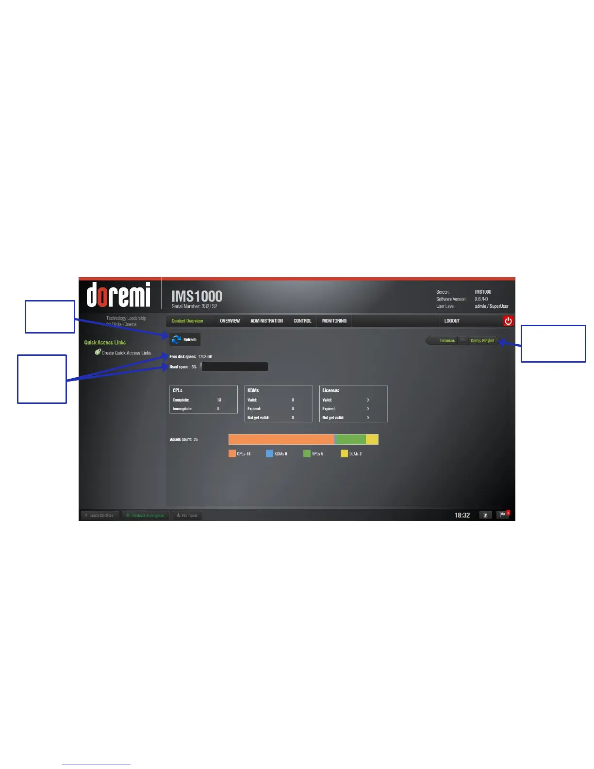 CPL, KDM, and Doremi License. The Content Manager application is available in the Control
