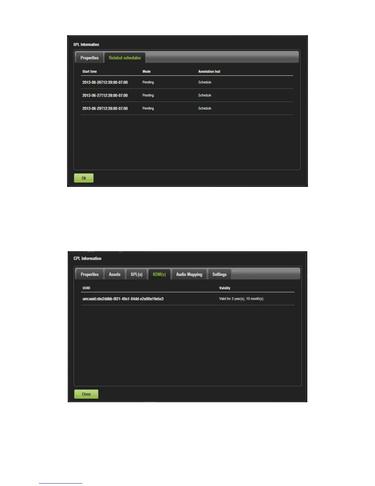 This tab will display the UUID and validity of each KDM for the concerned CPL (Figure