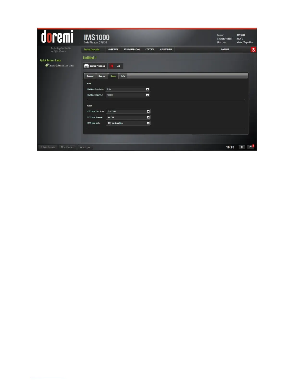 13.11.2.3.2 HDSDI Color Space Settings