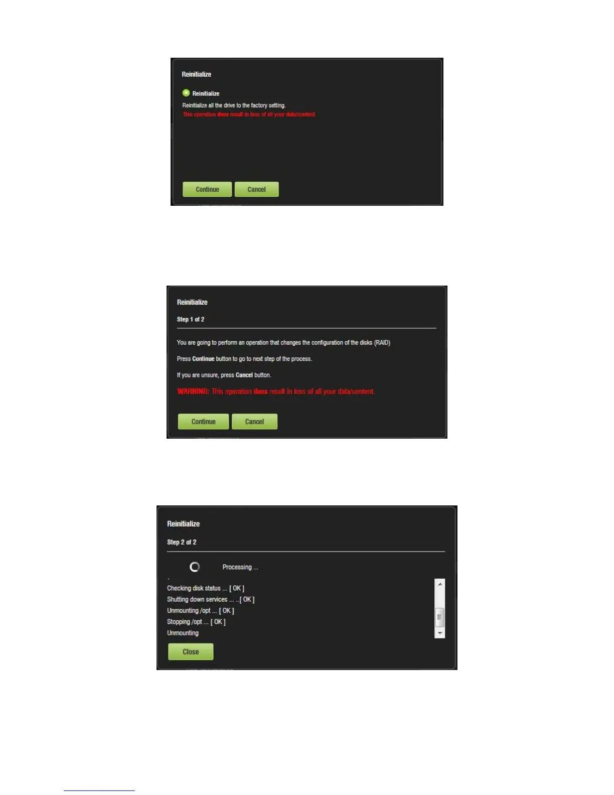 ● The Reinitialize window will appear, again asking the user to confirm the operation