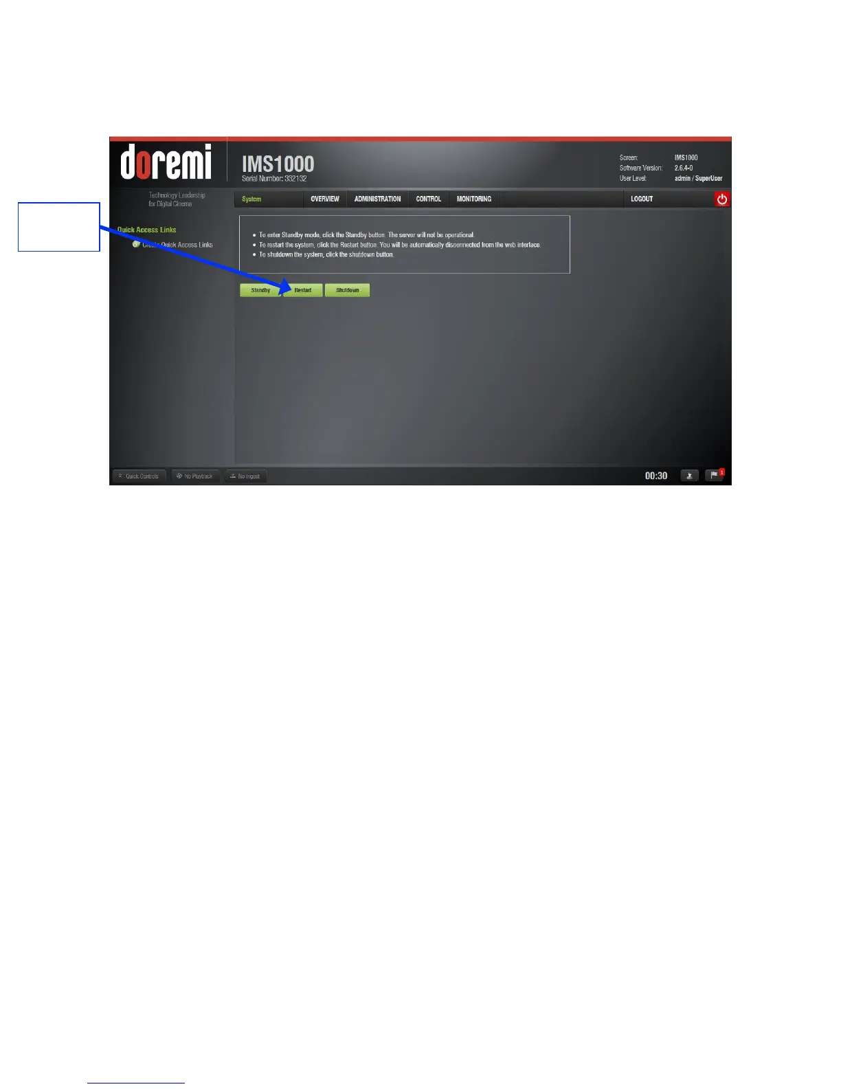 Go to Administration → System → Restart (Figure 340).