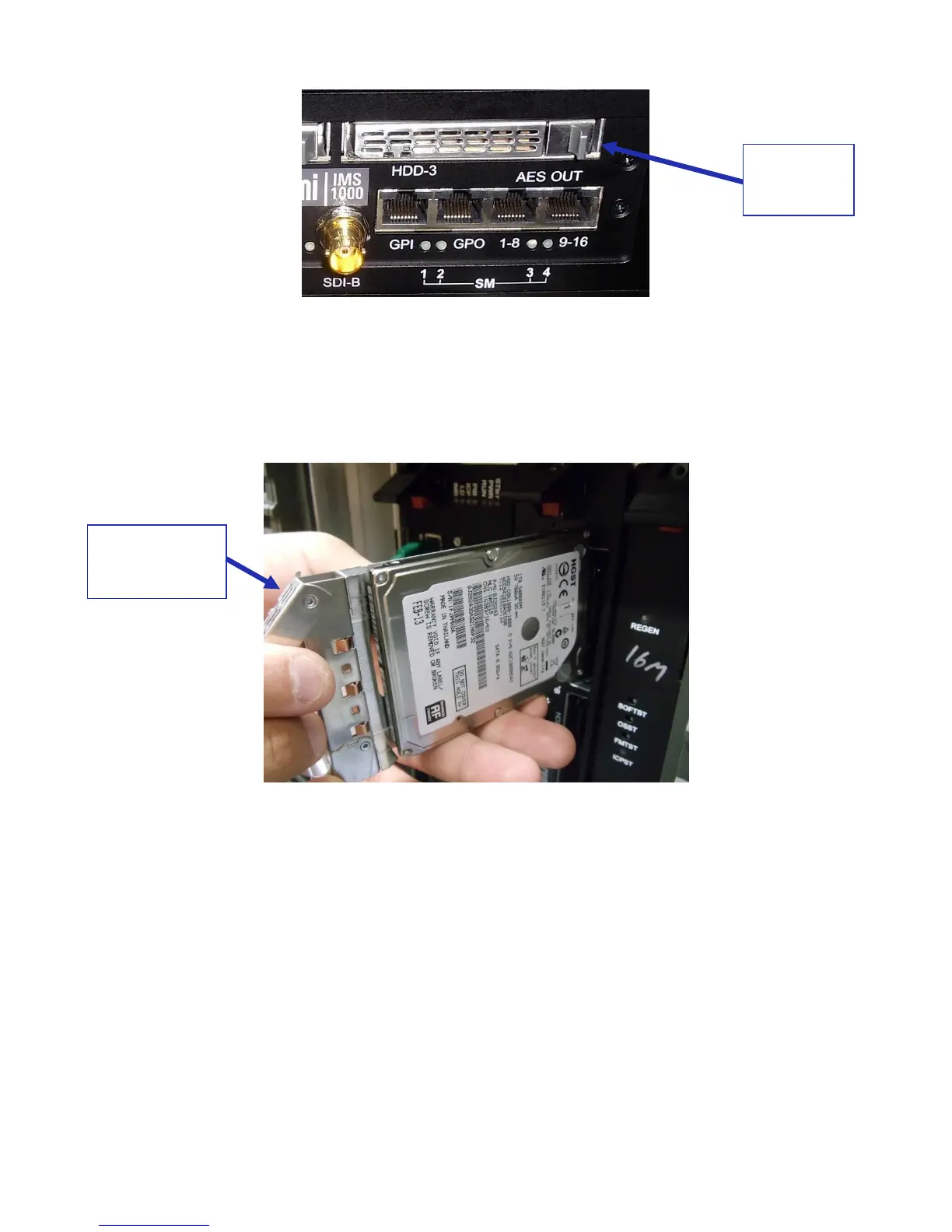 Close the silver HDD carrier handle until you hear an audible click and the release tab