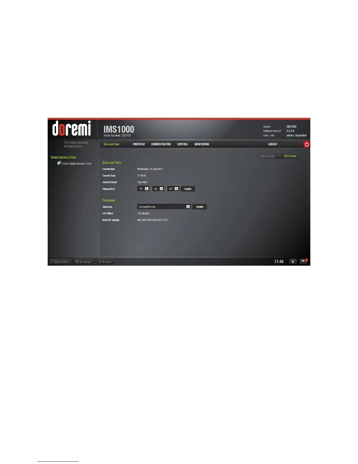 ● To check the time and time zone, go to Administration → Control Panel → Time Settings