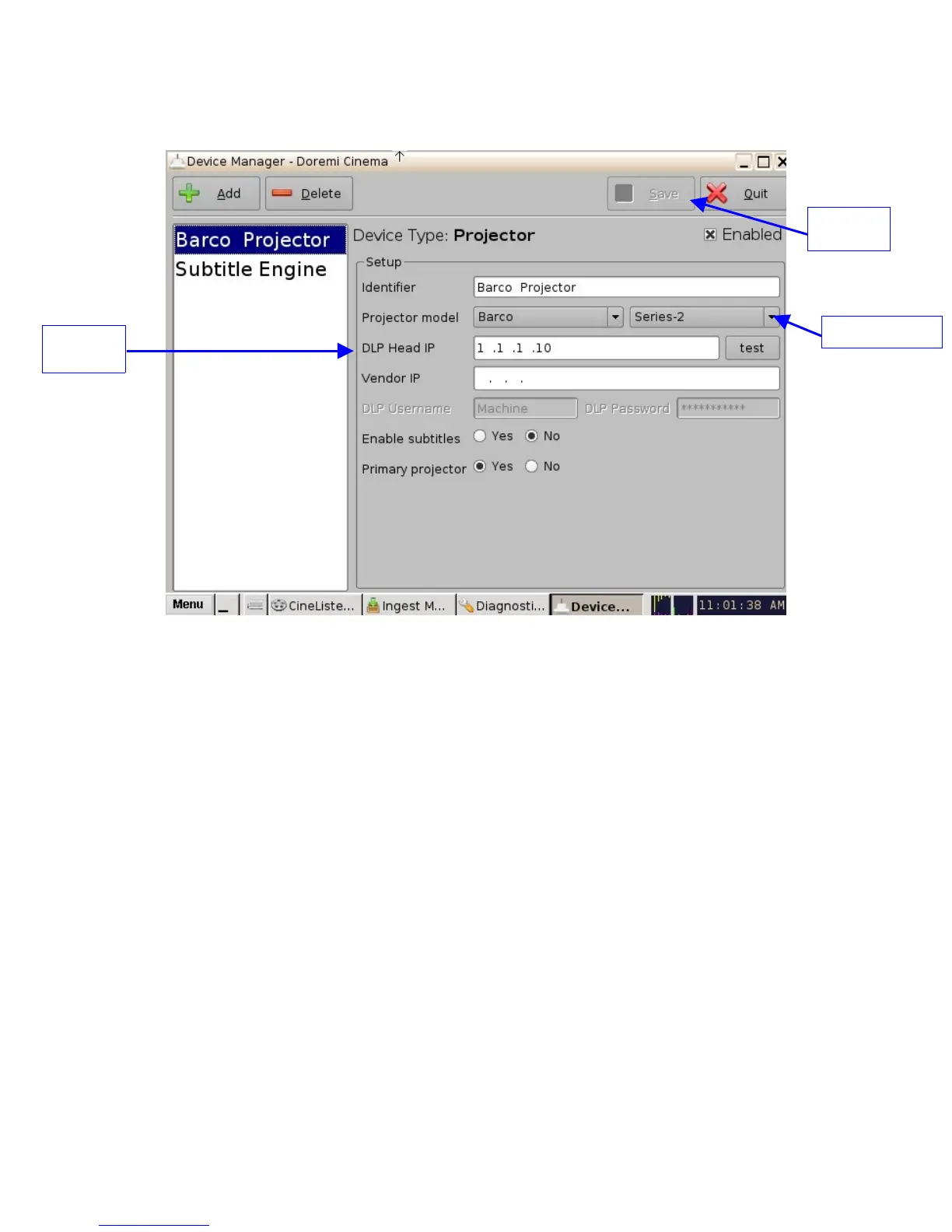 • Select the "Projector model" and click on "Barco" and then select "Series-2" (see Figure