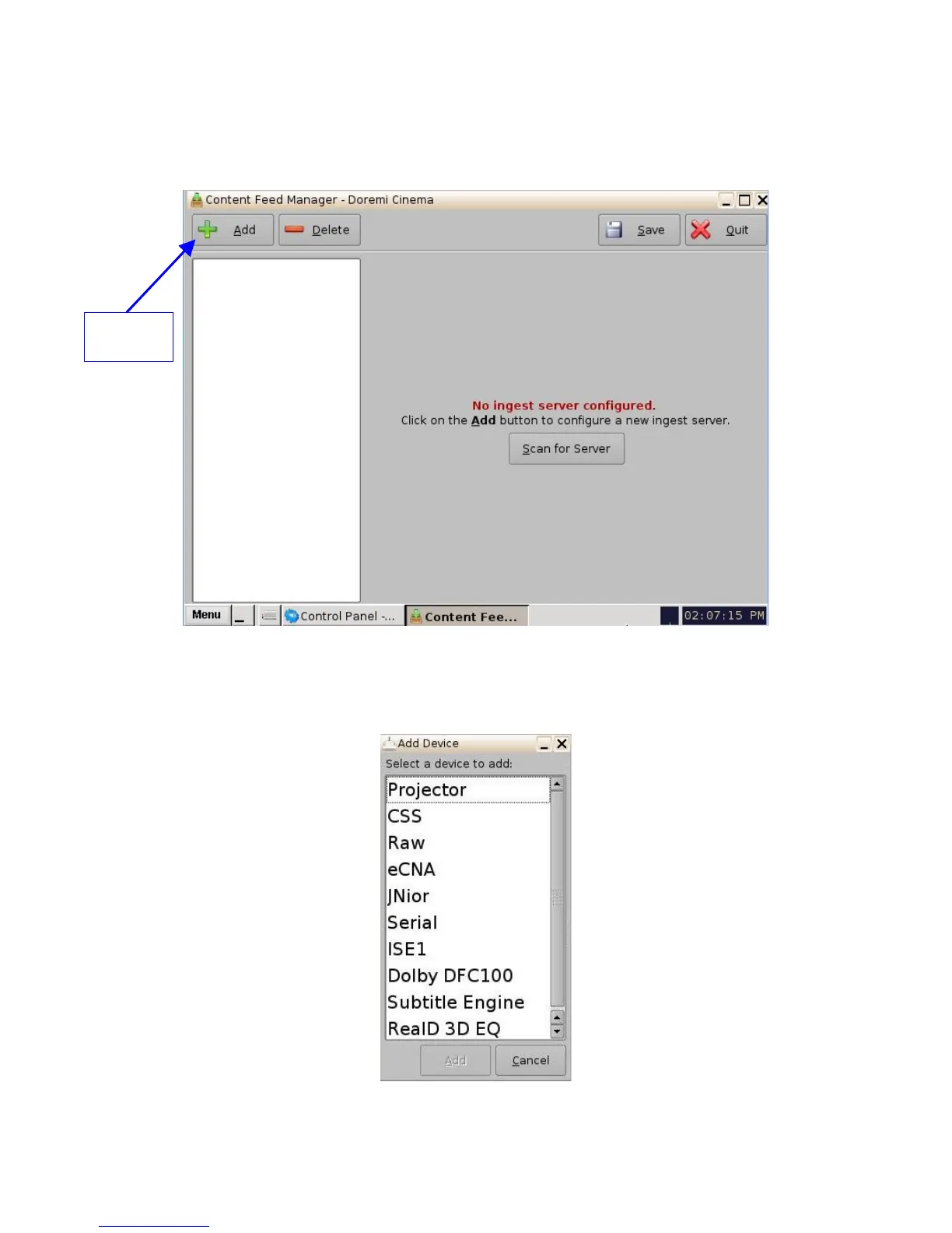 Figure 122: Device Manager Menu and "Add Device" Window