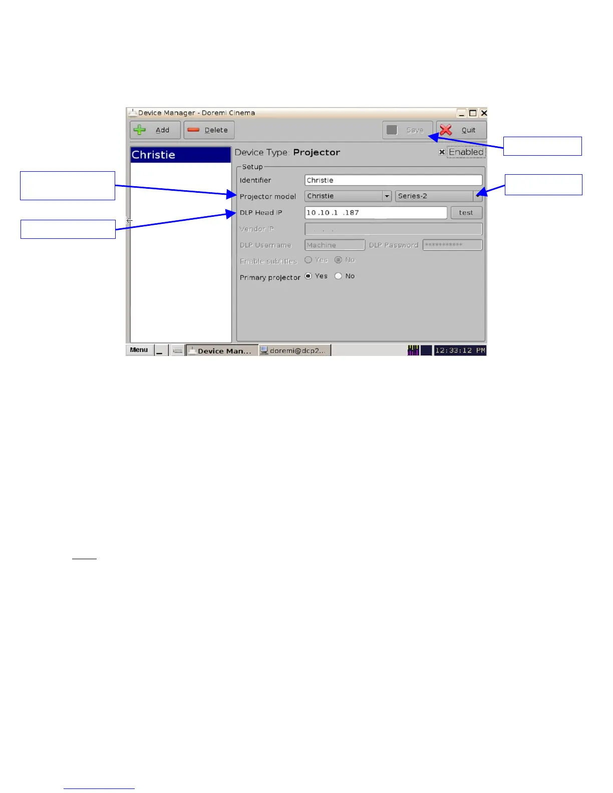 Figure 123: Device Manager Menu with Projector Configuration