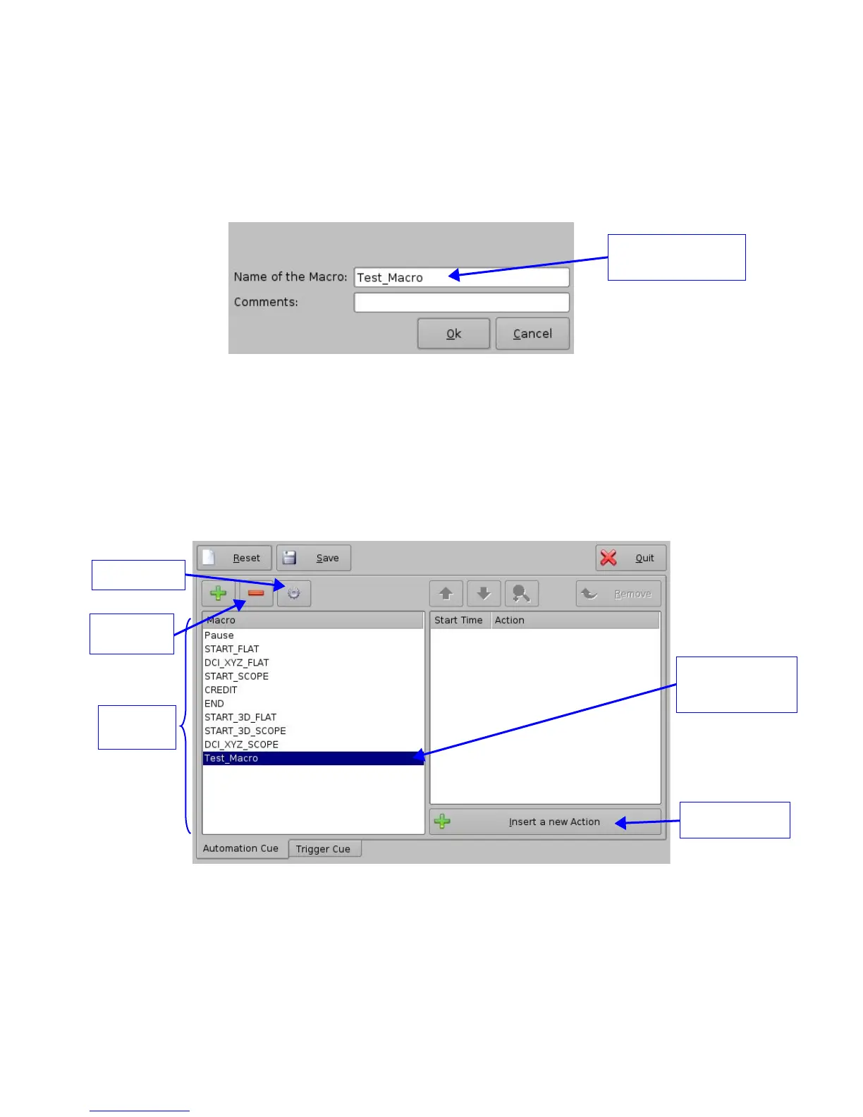 • Enter a Macro Automation Cue name in the appropriate field.