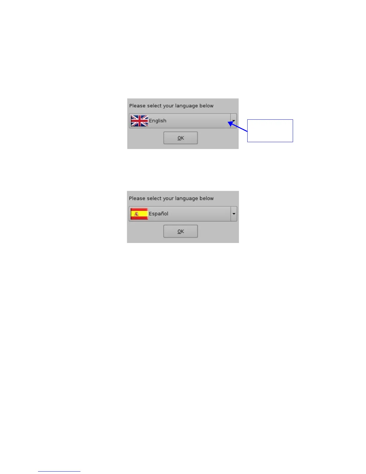 • Click the “OK” button when finished selecting language