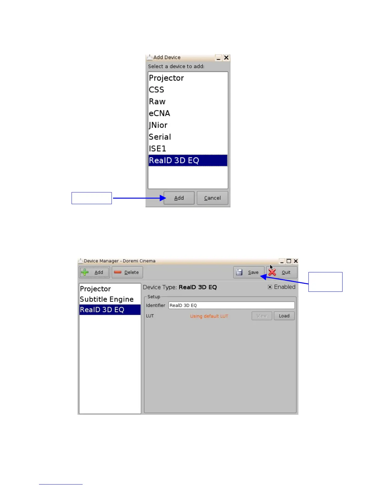 • Select the “RealD 3D EQ” device and click the “Add” button (see Figure 85 above).