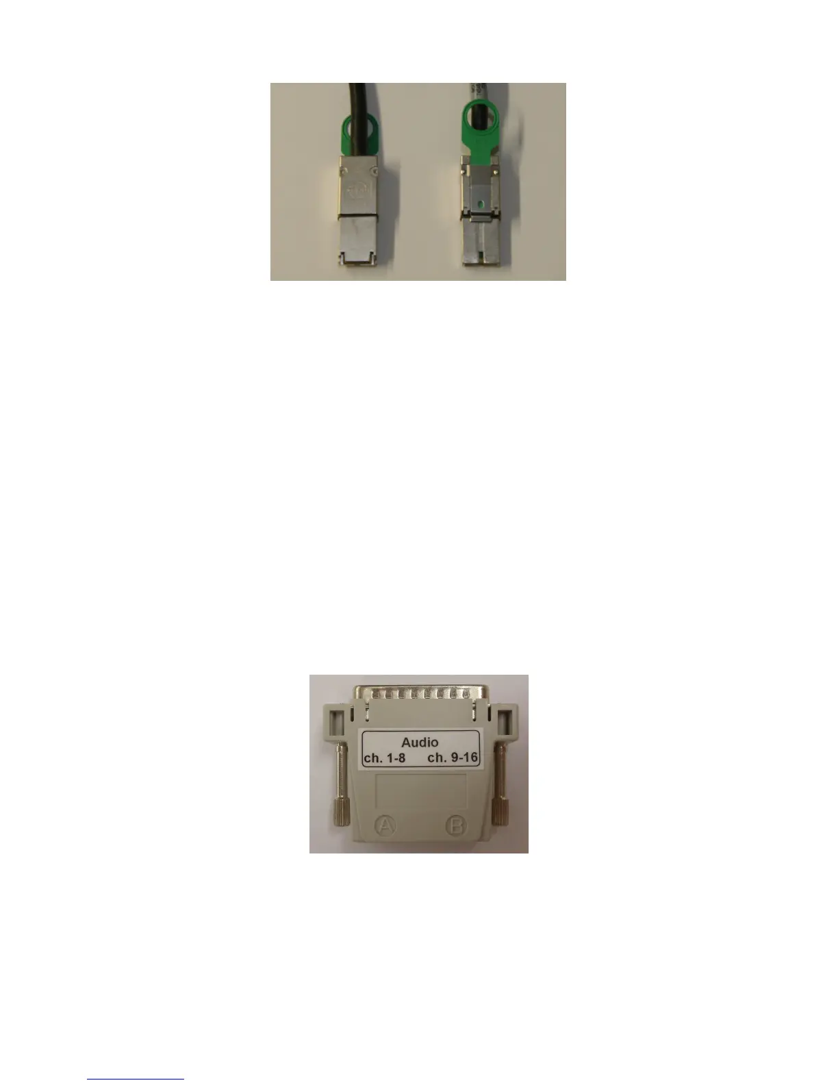 • Plug one CAT5 cable end into the top AES slot (RJ-45 connector) for audio channels 1-