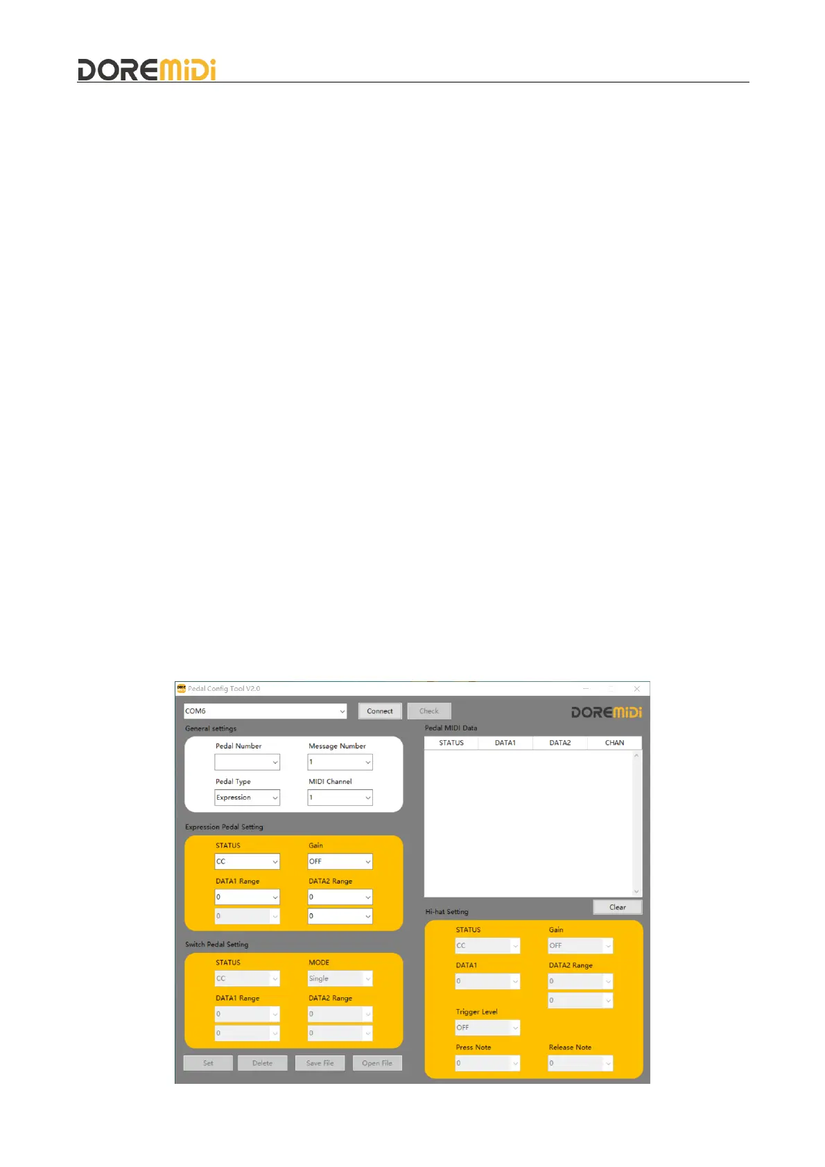 5. Configure pedal MIDI messages