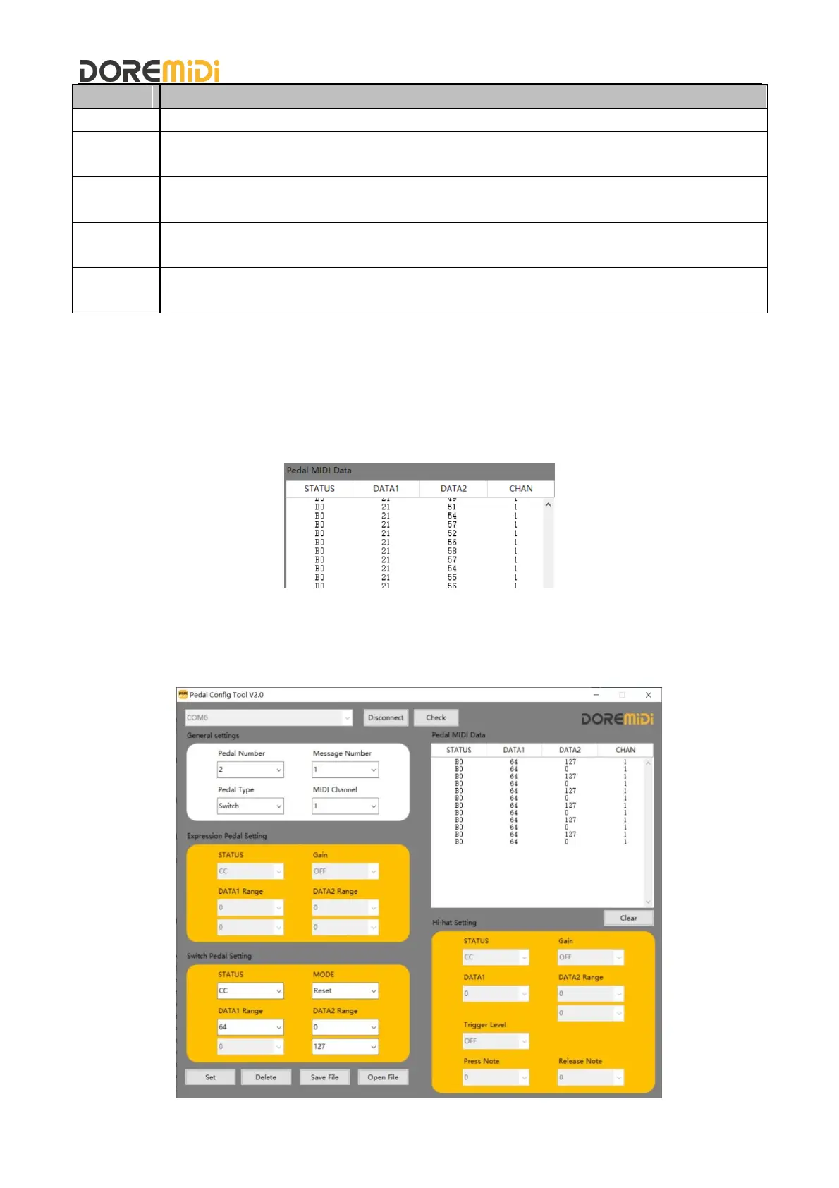 o. Pedal MIDI Data: MIDI message display box, after triggering the pedal, the pedal's