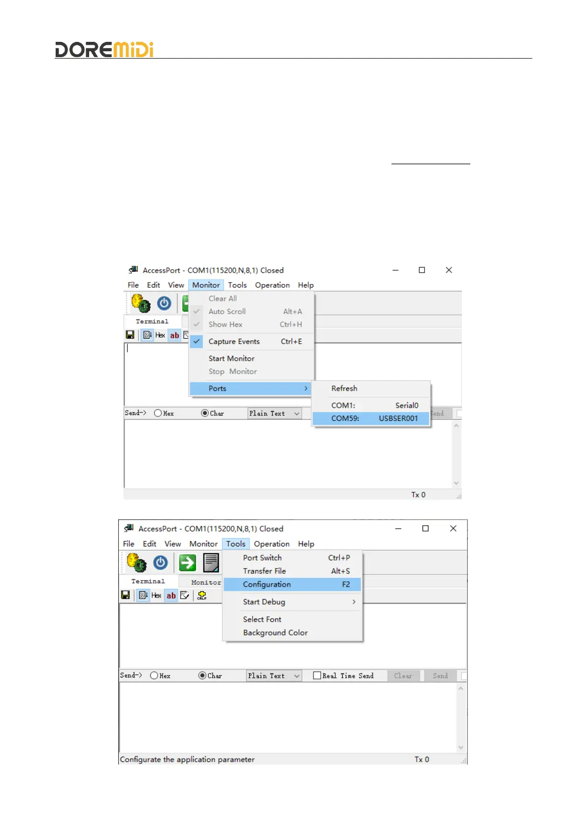 Software: Download the "AccessPort.exe" software. (Download from www.doremidi.cn)
