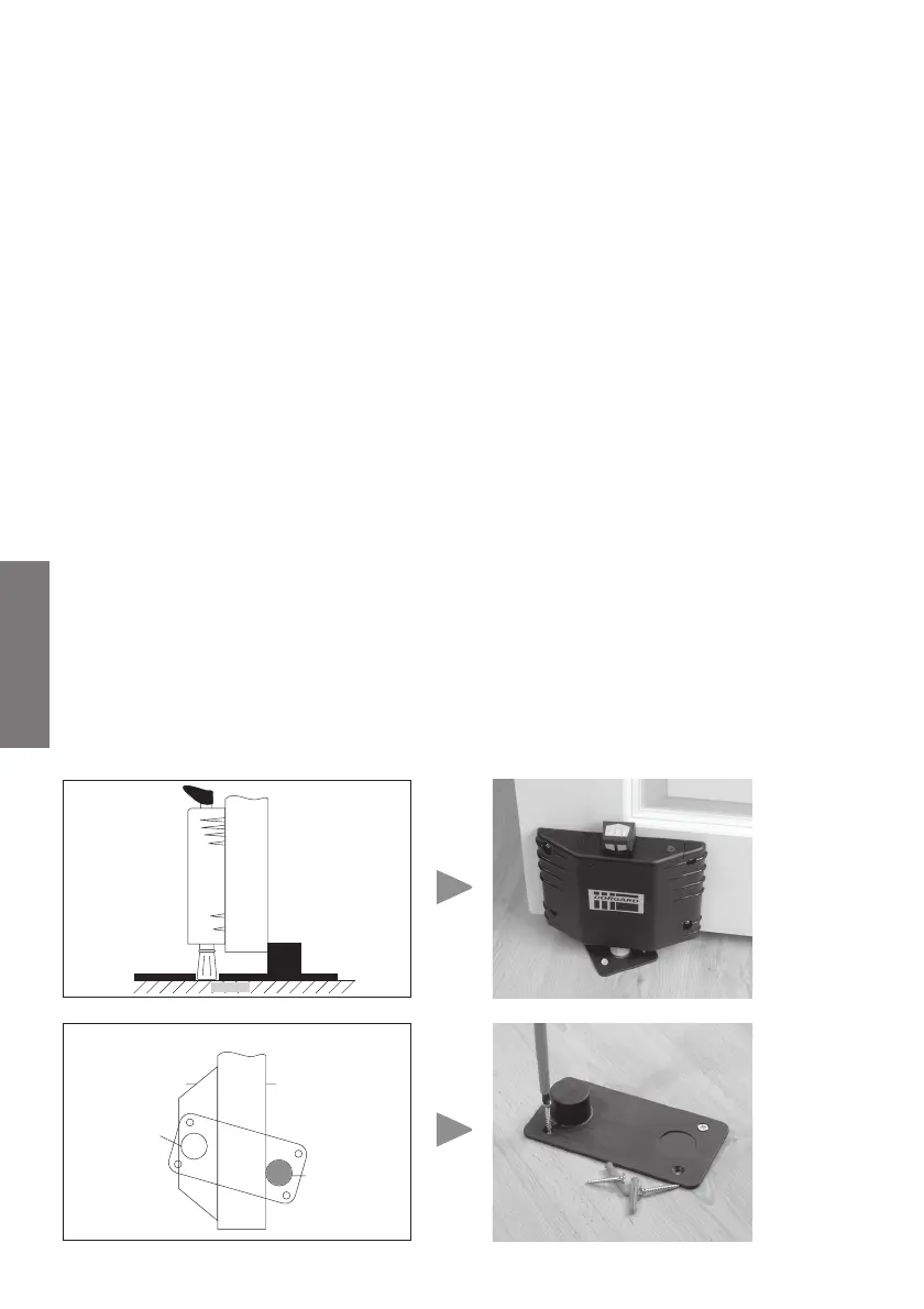 6) Si el suelo es de cemento, taladre 4 agujeros de 6mm (de unos 40mm de profundidad) en las