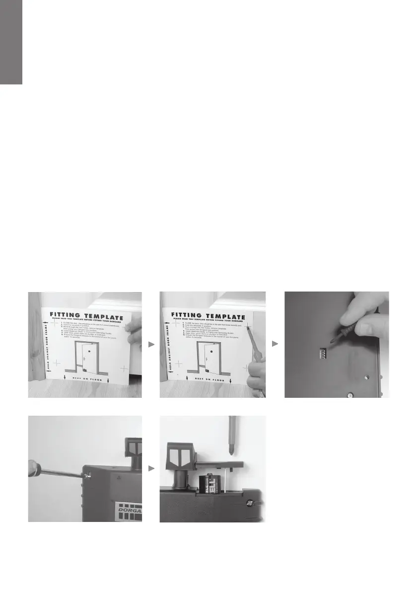 5) Using 2 of the 4 screws supplied fix Dorgard to your fire door, at points A and B on the fitting