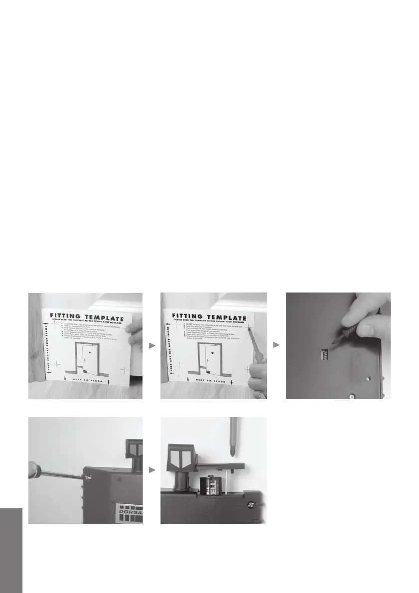 5) Utilizando 2 dos 4 parafusos fornecidos, fixe o Dorgard à sua porta corta-fogo, nos pontos A e B