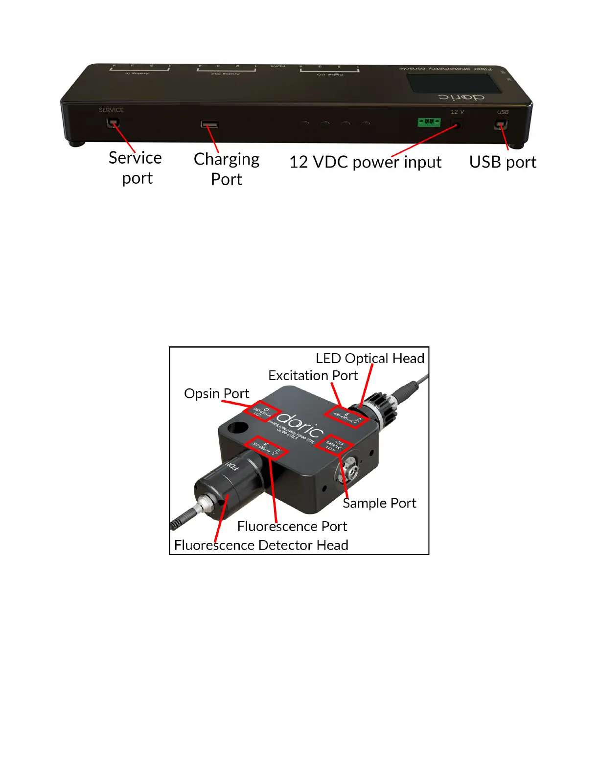 – The M8 connector port (Fig. 1.5a) is used to connect the optical head to the LED Driver using a Male-Female